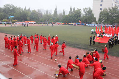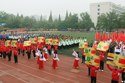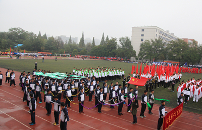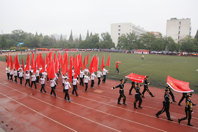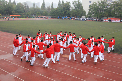 尽管秋雨连绵,来自全校各院系、直属单位、机关的22支代表队依旧排成整齐的队列,以精彩的入场式向现场观众展示着自己良好的精神风貌。物理学院的同学们排成爱因斯坦著名的质能公式E=mc2,生命科学学院则以“愤怒的小鸟”造型入场,信息学院的同学们组成栩栩如生的机器人队型向主席台招手问好,公共事务学院方阵中还加入了十几名留学生同学。同学们的精彩表演引起现场观众的热烈反响,给大家留下深刻印象。