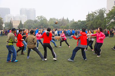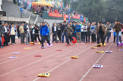 本届运动会为期两天,除了传统田径项目以外,今年的运动会还新增了脚踏实地、旱地龙舟、击鼓颠球、篮球投篮、50米往返跑等多个趣味比赛项目,引起广大师生踊跃参与。