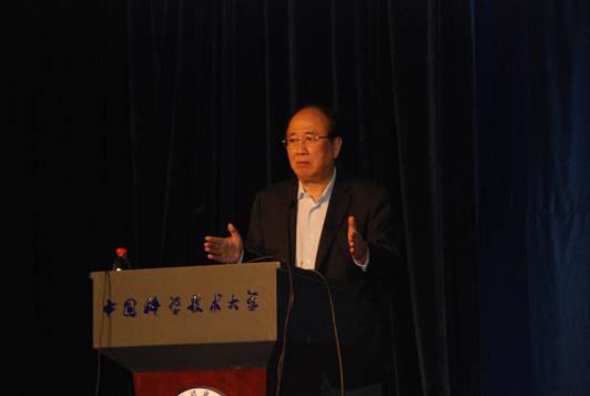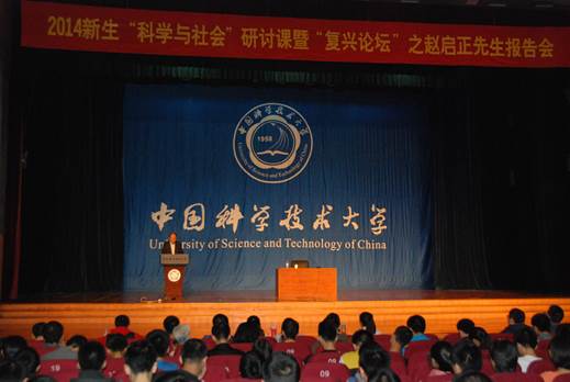 最后,赵先生指出,现在是全球化、信息化时代,但是中国的科技创新能力和西方发达国家还有很大差距。他引用“李约瑟难题”、“钱学森之问”勉励科大学子在实现“中国梦”的道路上要义不容辞、善于突破创新,并希望科大学生要善于培养超前的智慧——和有智慧的长者交流、读有智慧内涵的书、留足够的空间跑自己的思想。