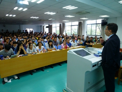 18日下午,来访客人在西区3B215教室举办哥伦比亚大学留学招生宣讲会。Soulaymane Kachani博士用风趣幽默的语言为科大学子介绍了赴美留学的技巧与经验,并当场与同学们互动、回答大家的问题,使同学们受益匪浅。
