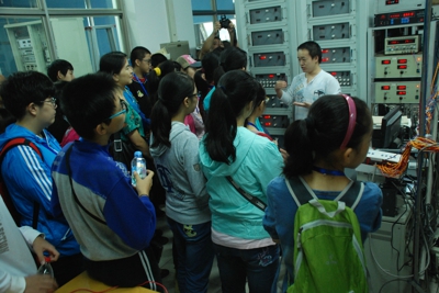 在陈旸院长宣布活动开始后,少年班学院25名学生志愿者分为五组,带领130多名初高中学生们参观了微尺度物质科学国家实验室。