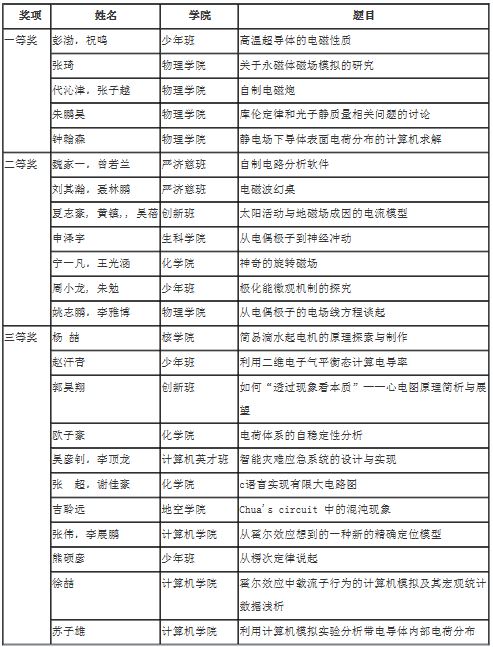 根据电磁学小论文竞赛的评选规则,最终评选出一等奖5名,二等奖7名,三等奖11名,评审老师向获奖同学表示祝贺并颁发了证书和奖品,勉励他们在以后的学习过程中不断巩固知识、完善自己的论文研究,争取做出更多更好的成果。