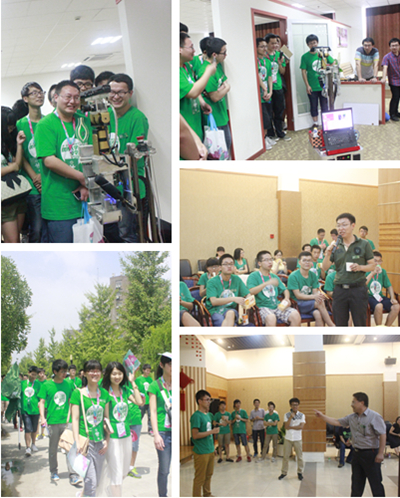 营员见面会刚刚结束,计算机分营就在老师和志愿者的带领下参观学院里各个实验室和科研平台。营员们来到陈小平教授所在的“多智能体系统实验室”,在这里,大家见到了实验室自主研制的“可佳”智能服务机器人,这是国际上首次实现的能够完成复合任务的服务机器人,具有人机对话、高空取物和规避障碍等作业功能。营员们兴致勃勃地与“可佳”进行互动,“可佳”出色的表现赢得了营员们多次感慨和赞叹。即将出征机器人世界杯的主创团队则诚挚邀请营员们的加入,为“机器人之家”的建设带来更多可能。在安虹教授的实验室里,同学们深度了解了科大校所结合的办学方式和精英教育的培养理念,强烈感知到了一代科学家对我国计算机事业的执着与努力。