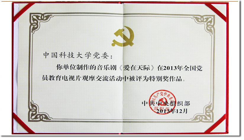 音乐剧《爱在天际》获中组部2013年全国党员教育电视片观摩交流活动特别奖