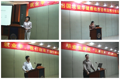 出国境健康体检是出国境同学必须进行的一个环节。为方便同学们了解健康体检的有关事宜,5月13日,校就业办特邀安徽省出入境检验检疫局国际旅行卫生保健中心主检签证医生潘芳,来我校为拟出国境深造的同学们做了一场“出国境留学健康体检及推介”的讲座。潘芳从国家间存在医疗卫生保健差异、各国流行不一的疾病病种、疾病预防控制的不同要求、留学生办理出国健康检查常见问题及流程等方面进行了详细介绍,并针对我校毕业生出入境留学可能遇到的预防接种等方面的问题和要求做了说明。
