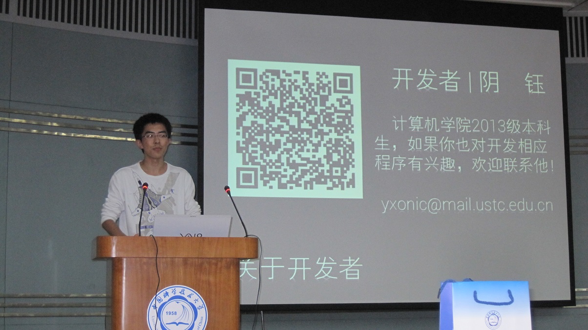 最后,发布会隆重推出了“USTC11”微信服务号。作为全校首个建立在微信公共平台上的服务号,“USTC11”区别于以往的订阅号,该账号拥有强大的高级服务接口,除了能方便地获取学校新闻、最新通知、BBS十大等资讯外,还提供校内热门活动的介绍,以及团中央微信账号“团学小微”的消息转发。不仅如此,在原有的校车、课表、教室、考试时间,以及校内公共服务电话和学院老师联系信息等查询服务的基础上,“USTC11”还提供“私人定制”服务。关注用户可以通过校内邮箱绑定身份信息,从而获得定制的人性化信息服务。目前这项功能已在计算机学院各班级通知、作业等信息的发布中进行试点。