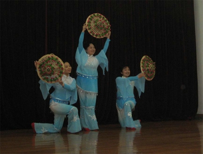 在两个报告中间及报告后,中华文化大学学员表演了精彩节目,优美的三人舞蹈,悠扬的小提琴独奏,雄壮的学员集体合唱,把全场带入了一个声情并茂的“礼乐”境界。