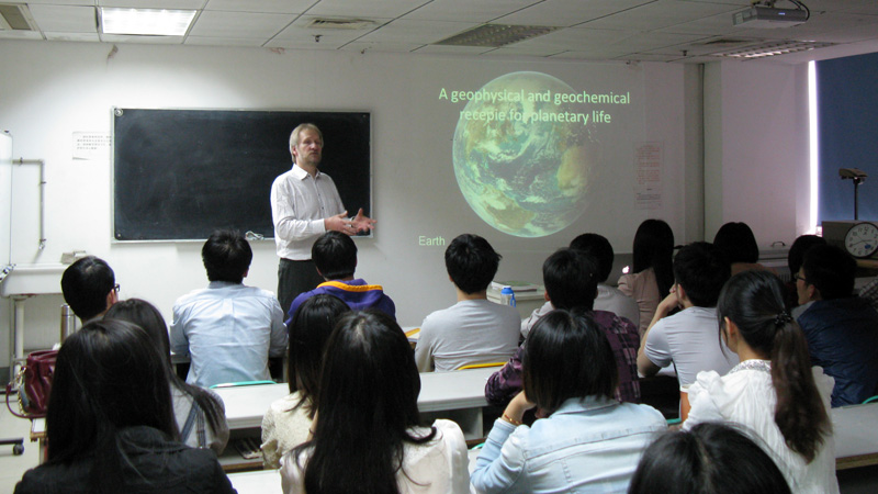 此次系列学术报告围绕地学研究中若干基础问题展开,涉及的主要内容包括:人类生存的家园-地球-所必具备的条件、地球发生核幔分异的证据、地球早期大气的演化、陆壳的组成及演化等。报告不仅为同学们提供了一个接受英语学术讲座的机会,同时同学们在本次报告中也更加深入地了解相关领域的研究前沿并拓宽了研究视野。