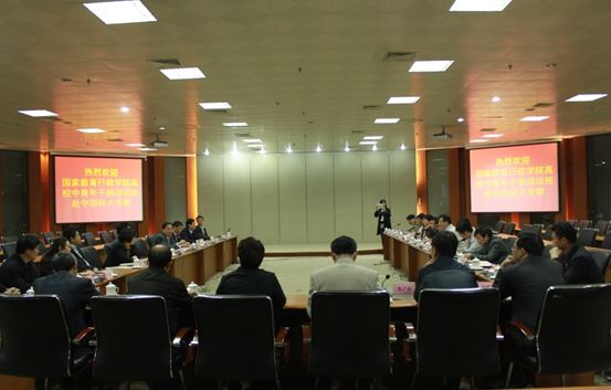 4月21日上午,国家教育行政学院第41期高校中青年干部培训班考察团一行21人,在团长清华大学财务处处长王守军的带领下来我校考察。