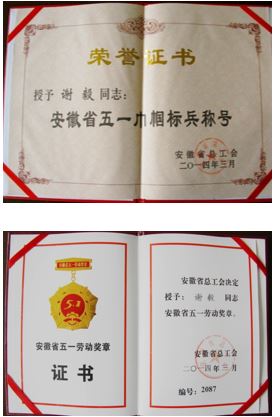 谢毅教授荣获安徽省五一巾帼标兵和安徽省五一劳动奖章