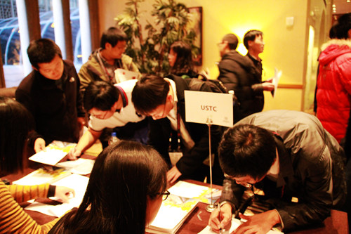 宣讲会上,北大物理学院院长谢心澄教授、复旦大学物理系主任沈健教授、南京大学物理学院院长李建新教授、清华大学物理系主任陈曦教授、中国科大物理学院副院长杜江峰教授分别向来宾们介绍了各自学校物理学院(系)的相关情况。杜江峰教授介绍了我院师资力量、科研及工作亮点、近年来人才引进情况以及本次海外人才引进申报项目,重点介绍了中组部国家创新人才计划青年项目。会上,他还通报了我院前五批国家创新人才计划青年项目申报和入选的情况,并动员了2014年度国家创新人才计划青年项目申报工作。我校物理学院良好的发展势头和引进人才的支持力度,受到了在场华人物理学家和海外学子的高度关注。众多海外学者和留学生与我院参会的教授们进行了面对面的咨询和探讨,表达了希望今后加盟科大物理学院的意愿。