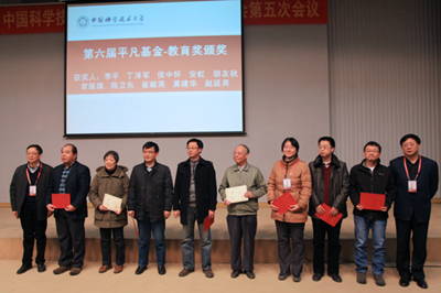 合肥微尺度物质科学国家实验室董振超教授、中国科学院量子信息重点实验室李传锋教授因在科学研究等方面作出的杰出贡献获得2013年度杰出研究校长奖(另发)。我校原创多媒体音乐剧《爱在天际》编导、人文学院兼职教授郁百杨获得音乐剧《爱在天际》特别贡献奖。李平、丁泽军、侯中怀、安虹、胡友秋、常振旗、陈卫东、崔献英、黄建华、赵延昇10位同志在本科招生、本科教学和管理等方面做出杰出贡献,获得第六届“平凡基金―教育奖”。