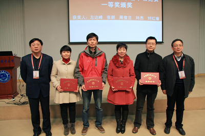 校工会主席龚流柱教授宣布第二届青年教师教学基本功竞赛一等奖获奖者及八届四次教代会优秀提案获奖者。左达峰、张群、周俊兰、刘杰、刘红瑜荣获青年教师教学基本功竞赛一等奖。孙梅代表《提高我校门诊报销医药费并实行按比例报销》(编号2号,承办部门:人力资源部)、周鹏代表《关于支撑岗位职称聘任分行业评议的建议》(编号11号,承办部门:人力资源部)、任皖英代表《关于丰富南区食堂饭菜品种和提高饭菜供应质量的提案》(编号15号,承办部门:饮食服务集团)等3件提案获优秀提案。许武书记、侯建国校长为以上获奖者颁奖。