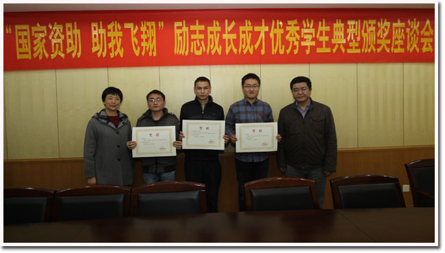 11月26日,学生工作部(处)在少年班学院401会议室召开“国家资助 助我飞翔”励志成长成才优秀学生典型颁奖座谈会,校党委鹿明副书记和获奖学生参加了会议。会议由学生工作部(处)长董雨主持。