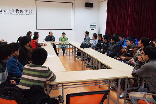 两天中,厦门大学师生先后随堂听取了“光学”、“计算物理A”“理论力学”、“理论力学与电动力学”、 “量子力学”等课程,对科大精彩的课堂教学表示钦佩。