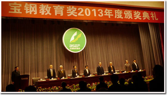 2013年度宝钢教育奖评选结果于近日揭晓,全国共有948名学生和247位教师获得该奖项,我校10名学生和4位教师在列。其中我校钱小东同学获宝钢优秀学生特等奖。今年的颁奖典礼于11月16日下午在宝钢人才开发院举行。我校党委副书记鹿明与学生工作处相关负责人参加了颁奖典礼。