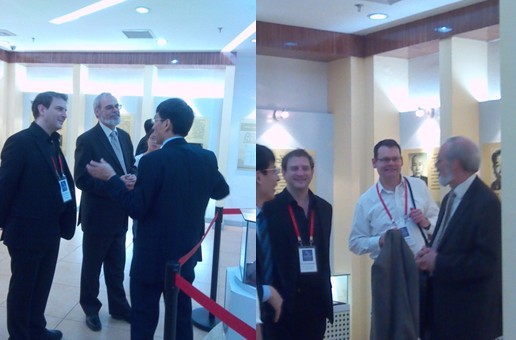 10月10日,由我校承办的“一流大学建设系列研讨会-2013”在合肥举行。中国首批九所“985工程”大学(C9)校长或校长代表,与美国大学联盟(AAU)、欧洲研究型大学联盟(LERU)、澳大利亚八校联盟(Go8)的负责人,共同签署了旨在阐释现代研究型大学的主要特征与使命的《合肥宣言》。会议之余,美国麻省理工学院(MIT)执行校长Eric Grimson等外宾参观了校史馆。他们对中国科大55年的辉煌深表赞叹,并对我校历史上涌现出的诸多科学大师表示由衷钦佩。副校长陈初升、我校“中科院人才计划”教授张捷和有关部门负责人陪同外宾参观并做了生动的讲解。