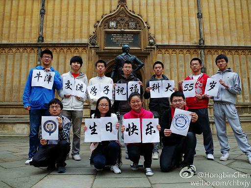 @HongbinChen:牛津交流学子祝福母校55周年校庆,愿我校早日跻身世界一流大学!
