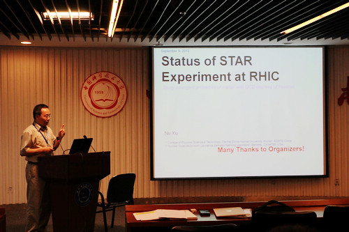 9月9日至11日,STAR国际合作组中国区域会议在中国科大理化大楼科技展厅召开。来自国内外高校和研究机构的约50名科研人员参加会议。会议主题是讨论STAR合作组近期两项重要的实验升级—缪子探测器(Muon Telescope Detector, MTD)和重味径迹探测器(Heavy Flavor Tracker, HFT),以及相关的物理分析。
