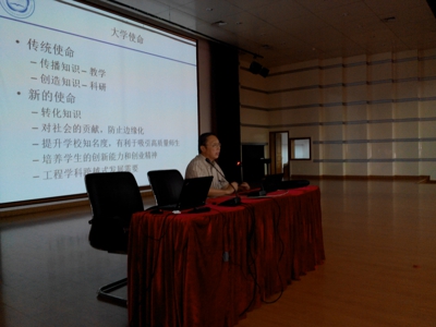 会上,李卫平院长对2013级研究生新生的到来表示热烈欢迎,他将传统的大学使命与现今大学使命进行对比,强调当今大学不应仅仅关注知识传播与创造,还应将知识转化为对社会的贡献,创造高校的品牌效应。以斯坦福大学为例,其毕业生们创造了包括HP,Cisco, EBay,Google等世界众多一流企业,成功将知识转化为对社会的贡献。科大也在不断地努力创造自己的品牌,为此,科大创建了先进技术研究院。科大通过先进技术研究院这一平台,与中国科学院有关研究所、国际知名企业与大学等建立了良好的合作关系,努力成为转型发展、创新驱动的“芯片”,在科大海内外校友中形成了“蜂聚效应”;在中国科学院有关研究所中形成了“磁铁效应”;在社会各类高技术和投资企业中形成了“溢出效应”。最后他鼓励大家趁现在年轻,一定要好好学习,脚踏实地,把基础打好,完成知识的转化,早日成为对社会有用的人。