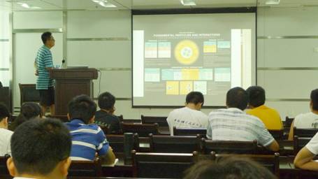 访问期间,陈虎成教授为夏季学期物理学院新开设的《粒子探测的前沿技术与方法》贡献了12个学时的授课。他系统地回顾了粒子物理实验中探测器和电子学的发展历史和特点,深入浅出地阐述了粒子物理实验的探测器和数据获取的原理,以及当前的粒子探测技术的前沿领域和发展趋势,并结合其工作领域详细介绍了布鲁克海文国家实验室物理系Omega组在液氩量能器及低温低噪声电子学等领域的进展。约50位物理学院的高年级本科生和研究生参加了学习,授课大大激发了同学们对探测器和电子学前沿技术的兴趣,期间听课同学踊跃发言提问,气氛互动热烈。