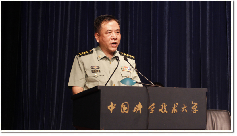 王守永大校在会上致辞。他回顾了两校军民共建的历史渊源与深厚友谊,强调了军训的意义,并对全体同学提出三点希望:通过军训增强国防观念,加强自身素养;以高标准、严要求顺利完成军训任务;珍惜军训中的收获和荣誉。同时,他希望全体教官认真履行职责、科学组训、严守纪律、学习科大精神,圆满完成任务。