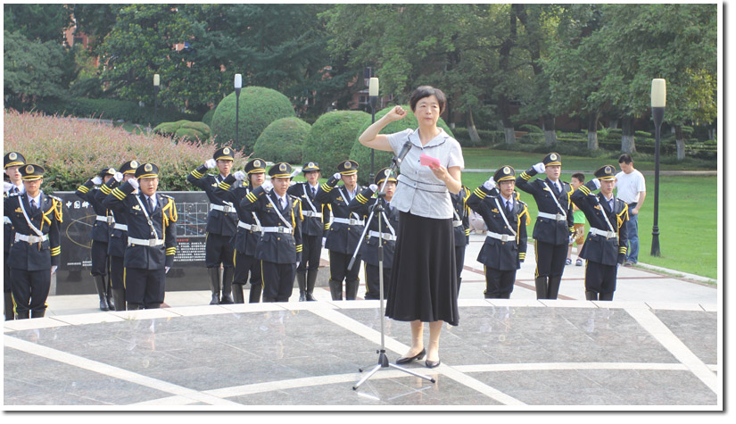 为表达对中国共产党的衷心祝福和崇高敬意,继承和发扬党的光荣传统及优良作风,校学生国旗护卫队联合物理学院各党支部、工程科学学院各党支部,于7月1日早晨在东区郭沫若广场举行庆祝建党九十二周年大型升旗仪式,活动主题是“献礼党的生日,共筑中国梦想”。校党委副书记鹿明现场观礼并带领青年党员重温入党誓词。