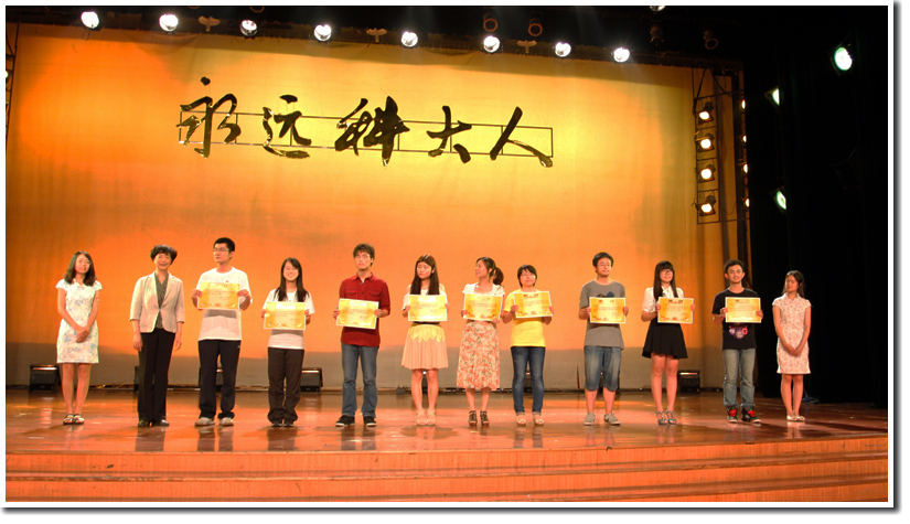 最后,全场齐唱校歌,在自信豪迈的歌声中,晚会圆满结束。现场开通了微博上墙,同学们借助微博倾诉了对学校、班级和同窗的真情,表达了所有即将离开学校的学子对母校的留恋、祝福以及对青春的热爱、对未来的憧憬。晚会结束后,观众久久不愿离场,争相与老师同学在礼堂合影留念。