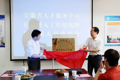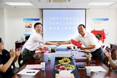 5月28日下午,安徽省人才服务中心驻中国科大工作站揭牌暨外派人员座谈会在我校举行,校人力资源部部长褚家如、安徽省人才服务中心主任胡建华共同在协议书上签字,并为工作站揭牌。安徽省人才服务中心副主任吴传华,我校招生就业处、人力资源部有关负责人出席了会议,外派人员代表参加了会议。