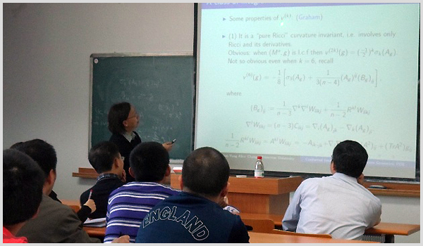 两位教授致力于数学研究多年,在微分几何与非线性分析方面做出了杰出贡献,在国际上享有盛誉。张圣容女士曾被邀请在国际数学家大会上作“一小时”大会报告,专长是微分几何和偏微分方程,她于1995年获得美国杰出女数学家奖,2008年当选美国人文与科学院院士,2009年当选美国科学院院士。杨建平先生为美国普林斯顿大学教授,著名微分几何专家,在共形几何研究中做出过杰出贡献。