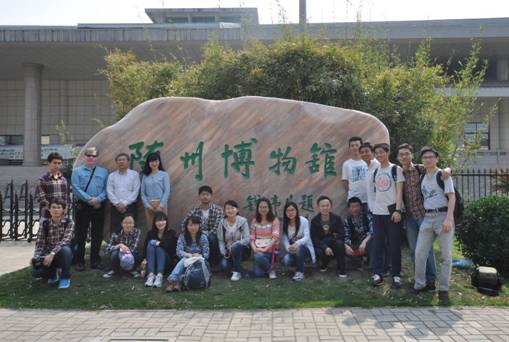 访问期间,科技考古实验室组织了考古现场野外考察活动,科技考古17名研究生和教师同James Burton教授一起赴湖北随州参观了市博物馆,并考察了随州叶家山西周墓地以及战国九连墩遗址。在遗址考察和出土西周青铜器等珍贵文物的观摩过程中,湖北省文物考古研究所、随州市博物馆和枣阳文物考古工作队给予了大力支持。