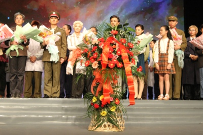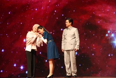 已是94岁高龄的郭永怀夫人——李佩先生在北京特意托人送上花篮,祝贺《爱在天际》首演成功。李佩先生原任中国科学技术大学研究生院外语教研室主任,2003年,她将郭永怀先生的两弹一星勋章献给中国科学技术大学;2008年又将她和郭永怀先生的毕生积蓄60万元分别捐献给中国科学技术大学和中国科学院力学研究所。