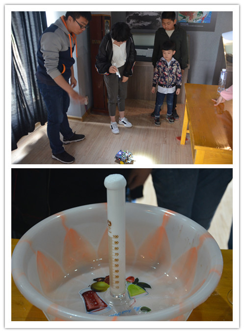 此外,磁悬浮、多功能循迹小车和大象牙膏也吸引了众多目光。在孩子们感受悬浮磁铁的神奇之时,志愿者们耐心地讲解通电螺线管的工作原理。另一边的大象牙膏实验则由过氧化氢快速分解所产生大量气泡而得名,这个实验需要的原料较少,而产生的效果却如火山喷发一样壮观。孩子们品尝着科技大餐,感受到前所未有的震撼与新奇。