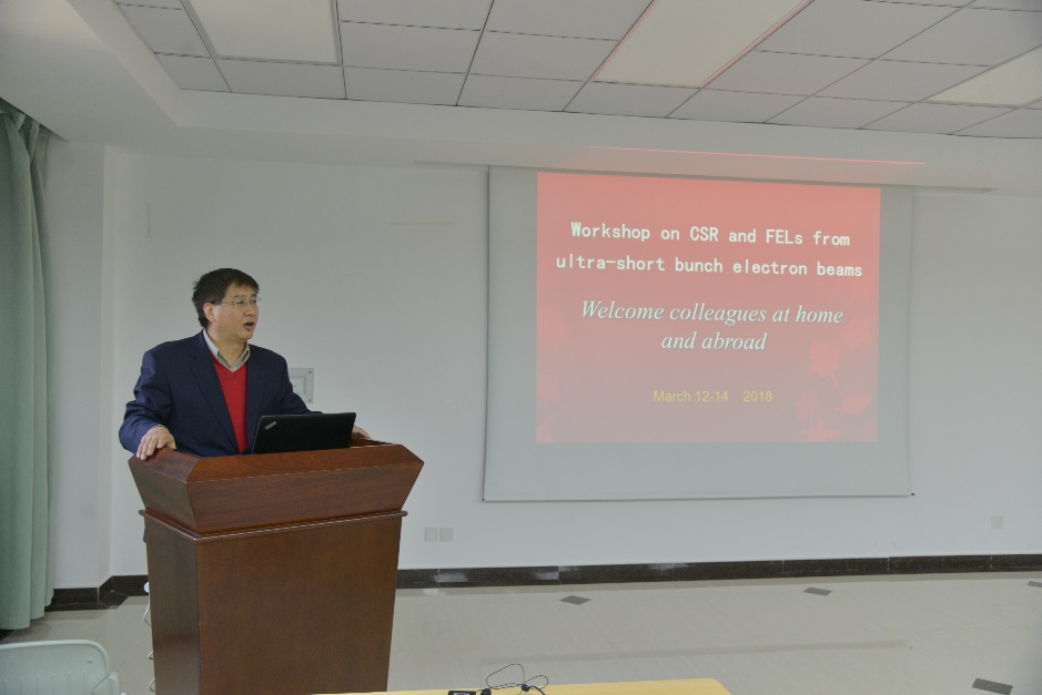 实验室主任陆亚林教授致辞欢迎各位专家代表的到来,介绍了中国科学技术大学和国家同步辐射实验室的历史和现状,以及此次研讨会举办的背景。他指出,基于加速器的太赫兹自由电子激光技术是近几年的研究热点,在太赫兹辐射领域有着巨大应用潜力,超短束团的相干辐射研究对自由电子激光尤其是太赫兹波段有重要意义。