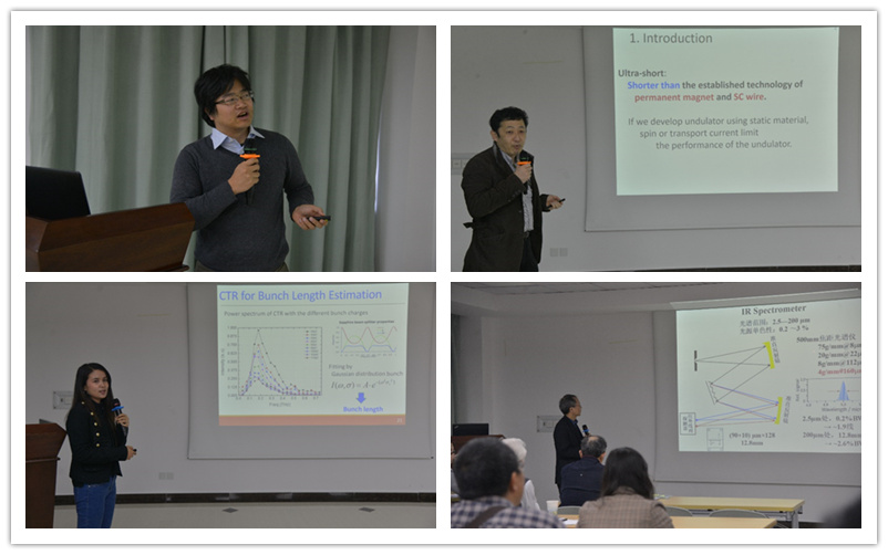会议由贾启卡研究员主持。日本东北大学Fujio Hinode教授、日本京都大学Heishun Zen博士、中国工程物理研究院周奎博士、北京大学赵刚博士、华中科技大学凃修德博士、国家同步辐射实验室高琛教授和黄瑞萱博士等先后报告了各自研究机构在太赫兹或红外自由电子激光装置方面的研究进展。与会的其他科研人员也就太赫兹相干辐射产生机理与方案、超短电子束团的产生及其辐射特性与物理效应、超导周期磁铁研制等关键物理与技术问题分别做了报告。