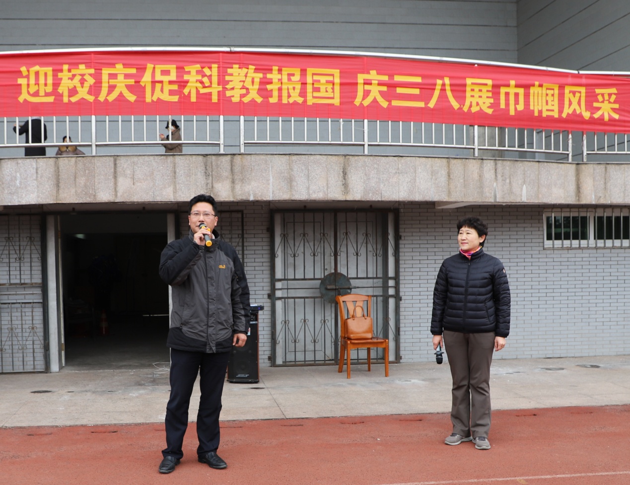 3月8日下午,500多名女教职工欢聚东区操场,一起度过了一个开心热闹的节日。校党委副书记、工会主席蒋一出席活动,并向全校女教职工致以节日的问候。他代表学校感谢女教职工为学校发展建设做出的巨大贡献,祝愿所有女教职工家庭和美,生活幸福美满,工作再创辉煌。活动由工会常务副主席史明瑛主持。