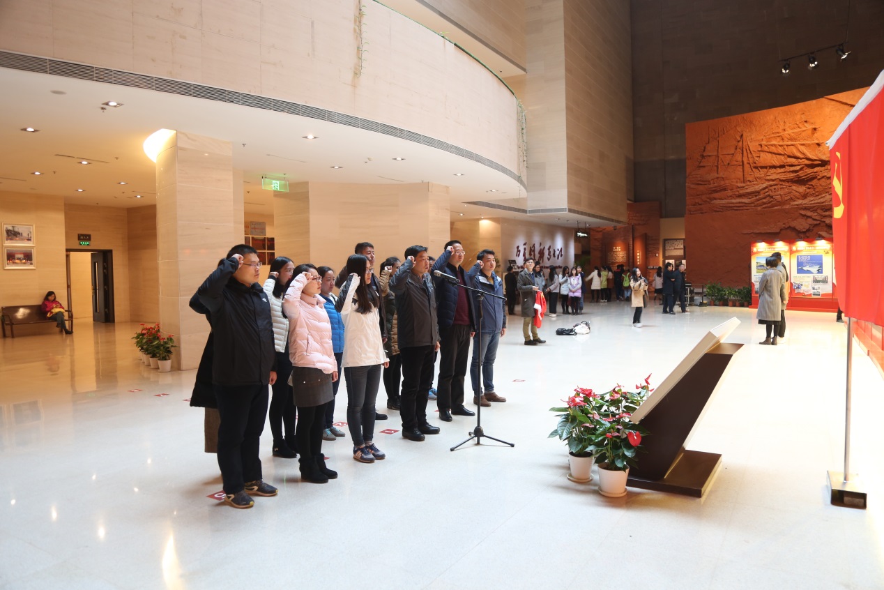 在肃穆的纪念馆大厅,面对鲜艳的中国共产党党旗,先研院党委副书记朱东杰带领全体党员重温了入党誓词,进一步坚定“不忘初心、牢记使命”的政治信念。