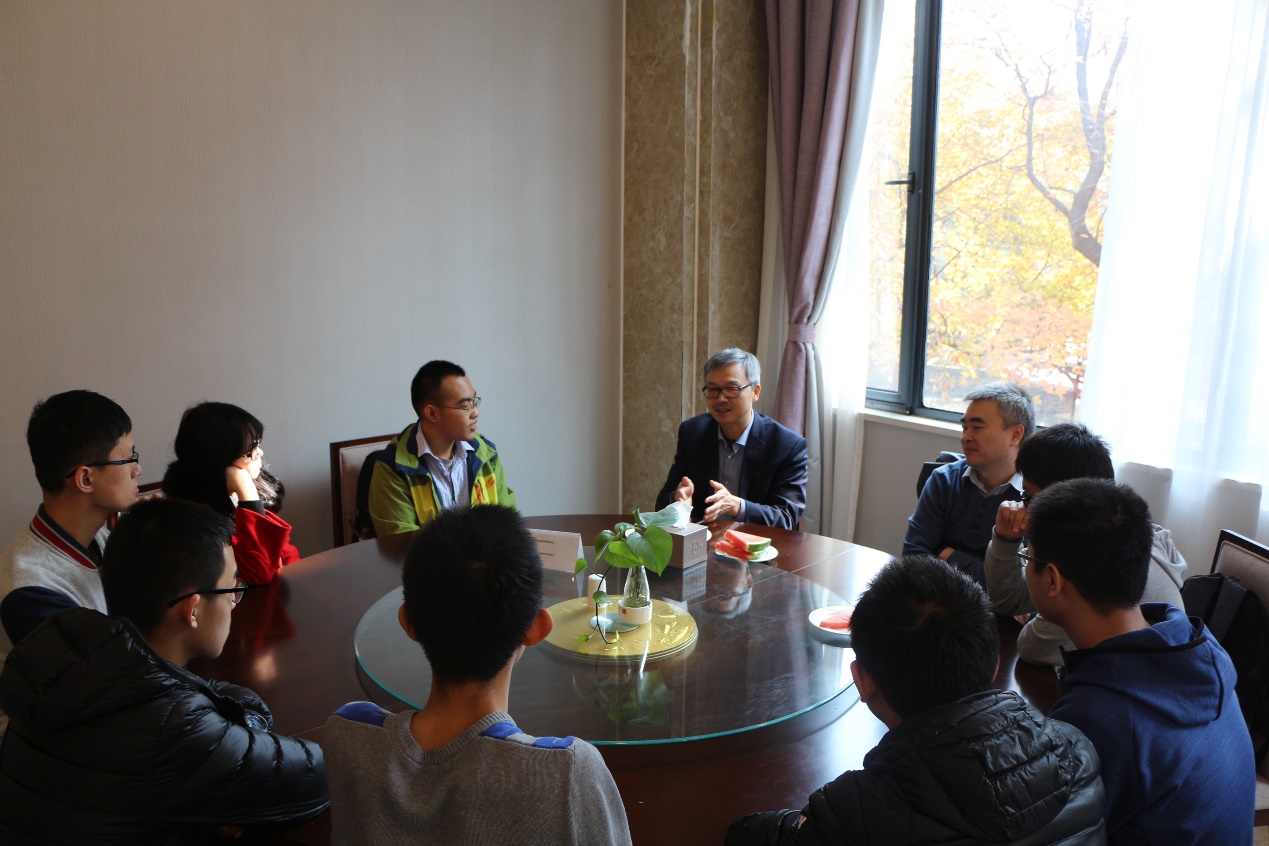 报告会前,杨学明院士与多名青年教师进行一对一深入交流,对他们的学术研究提出建议和指导。利用午餐时间,他与卢嘉锡英才班的本科生进行座谈,为大家解答了为什么要学化学,化学有什么用,以及化学本质是什么的问题。他指出,只有理论和实践结合,才能推动科学发展。本科生提升个人修养要与未来职业规划相结合,对于选择当科学家的科大人应当注重培养好思考问题和解决问题的能力;对出国深造方问题,他表示国内很多老师的学术水平已经达到国际一流,大家不应盲目跟风,要在适合自己的地方做出一番成绩。