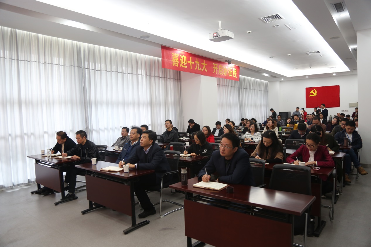 10月18日上午9时,举世瞩目的中国共产党第十九次全国代表大会在北京开幕。中国科大先研院组织全院党员、职工群众和创新单元职工代表在未来中心4号会议室集中收看会议实况直播,认真聆听、学习习近平总书记代表十八届中央委员会向大会所作的《决胜全面建成小康社会 夺取新时代中国特色社会主义伟大胜利》的报告。