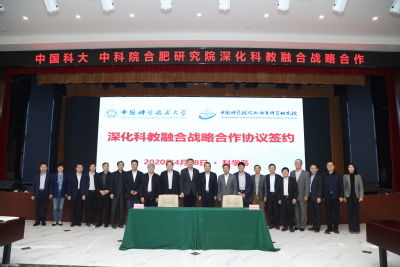 4月28日下午,中国科学技术大学、中国科学院合肥物质科学研究院深化科教融合战略合作签约仪式在合肥科学岛举行。中国科大党委书记舒歌群、校长包信和出席仪式并讲话,中科院合肥物质科学研究院院长刘建国主持仪式,中科院合肥物质科学研究院党委书记黄晨光出席仪式并讲话。仪式上,包信和、刘建国代表双方签署深化科教融合战略合作协议,校领导朱长飞、蒋一、王晓平、毕金初、罗喜胜、何淳宽、黄素芳、褚家如、傅尧参加签约仪式。