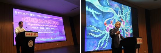 中国科学院院士程和平教授、南开大学生命科学学院院长陈佺教授、中国科学技术大学生命科学学院姚雪彪教授、符传孩教授共同主持了后续会议报告。中国科学院院士施蕴渝教授,美国斯坦福大学教授Aaron D. Gitler,中国科学技术大学毕国强教授,南开大学陈佺教授,南京大学医学院李朝军教授,中科院分子细胞科学卓越创新中心陈正军研究员,四川省人民医院杨正林教授,中国科学院合肥物质科学研究院方志友研究员,中国科学技术大学符传孩教授、许超教授、刘行教授等12位学者就“细胞器可塑性与细胞命运”“细胞结构和细胞可塑性”“细胞器动力学和细胞骨架”等3个主题进行了广泛交流,并做了细胞器动力学与神经元可塑性、Cryo-ET解析神经元突触的结构和动力学、线粒体稳态的分子调控与细胞命运决定、新生儿酮体升高促进心肌细胞线粒体成熟和能量代谢、线粒体RNA甲基化修饰与线粒体基因表观遗传调控的分子机制研究、Occludin调控细胞器动力学机制、视网膜疾病与致盲机制、AAA ATP酶Yta4在调节线粒体动力学中的作用、Oct4胶质瘤棕榈酰化修饰调控新机制、PICS复合物调控piRNA生成及细胞周期的分子机制、光谱成像显示有丝分裂过程中线粒体相互作用体、显微成像技术等精彩报告,共同分享了对细胞器动力学和细胞可塑性的最新研究成果。
