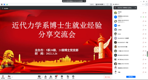 近代力学系2020级、2021级博士生党支部举行就业经验分享会