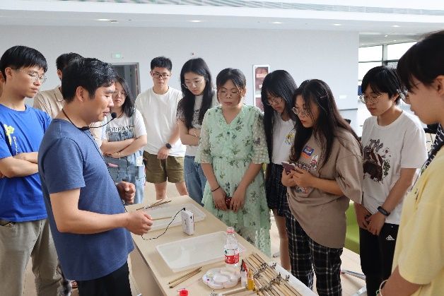 最后,刘靖老师给大家现场演示了流沙笺的制作工艺,并指导同学们有序体验纸笺制作。本次开幕式也在同学们沉浸式体验纸笺制作中落下帷幕。