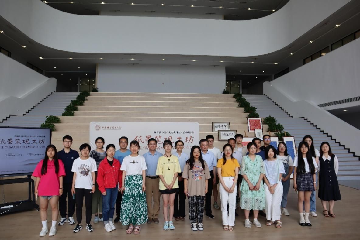 6月21日,教育部-中国科大文房四宝工艺传承基地“纸墨笔砚工坊”师生作品联展·合肥高新区专场开幕式在中国科大高新园区图书馆举办,本次活动由人文与社会科学学院、图书馆、高新园区管办、校团委主办,教育部-中国科大文房四宝工艺传承基地承办,美丽科学、国仪量子协办。展区设置在高新园区图书馆4楼大厅,展览时间从6月21日持续至7月21日。