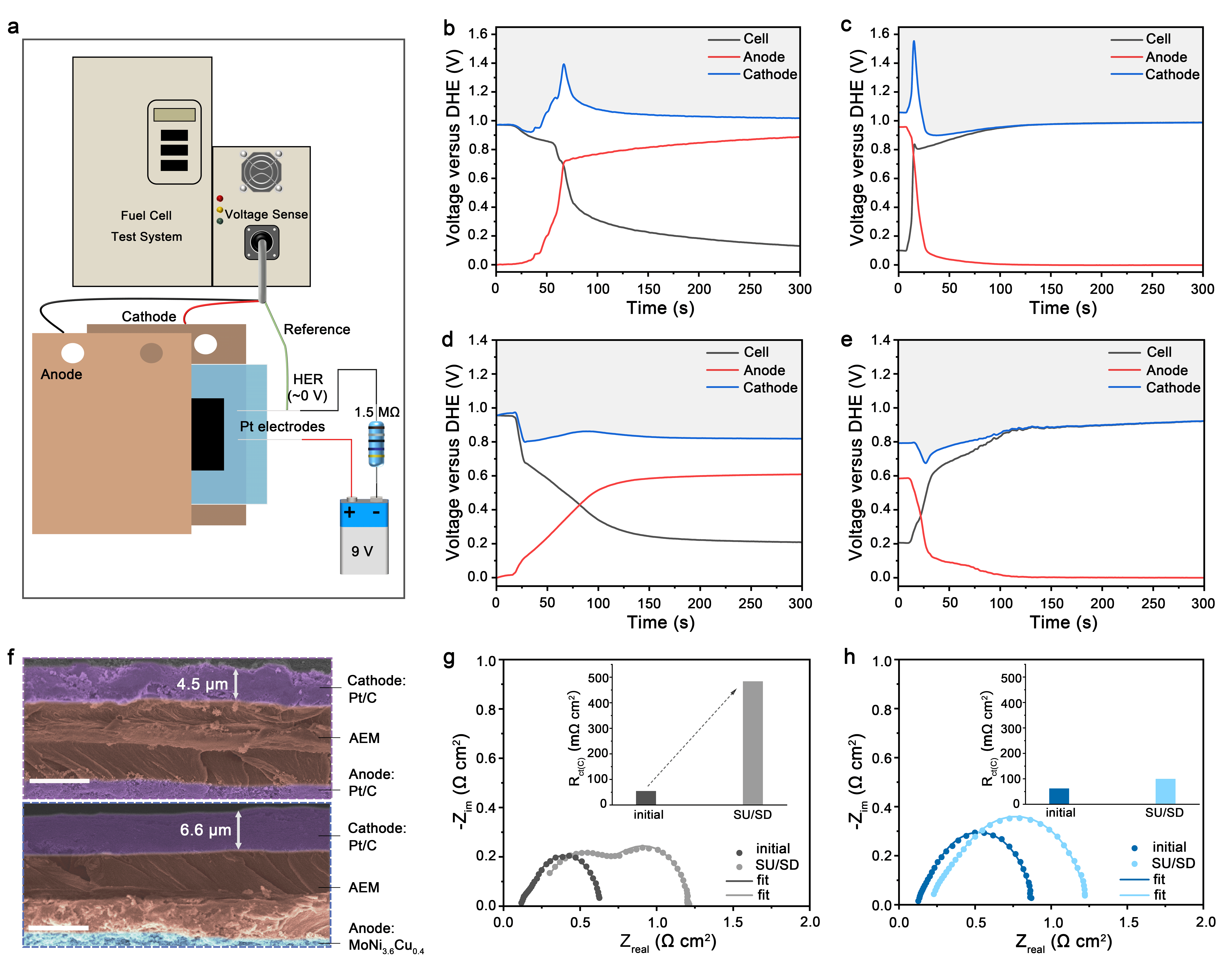 该工作开发了一种高效的非贵金属阳极催化剂,通过对HOR和ORR反应的“选择性催化”,为解决燃料电池启停过程中的关键RCD问题提供了一种简便有效的方案,无需复杂的系统改造即可显著提升电池耐久性。
