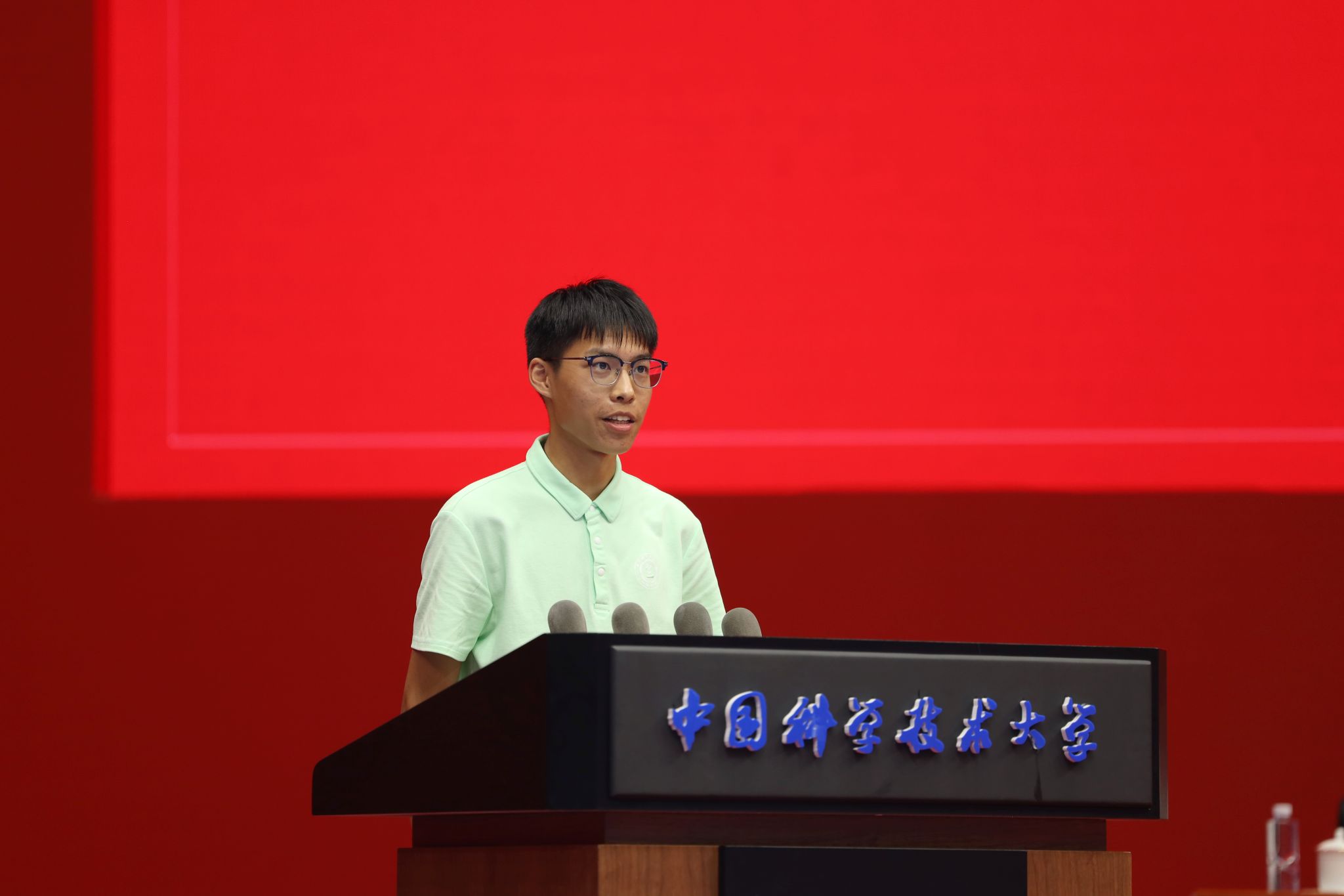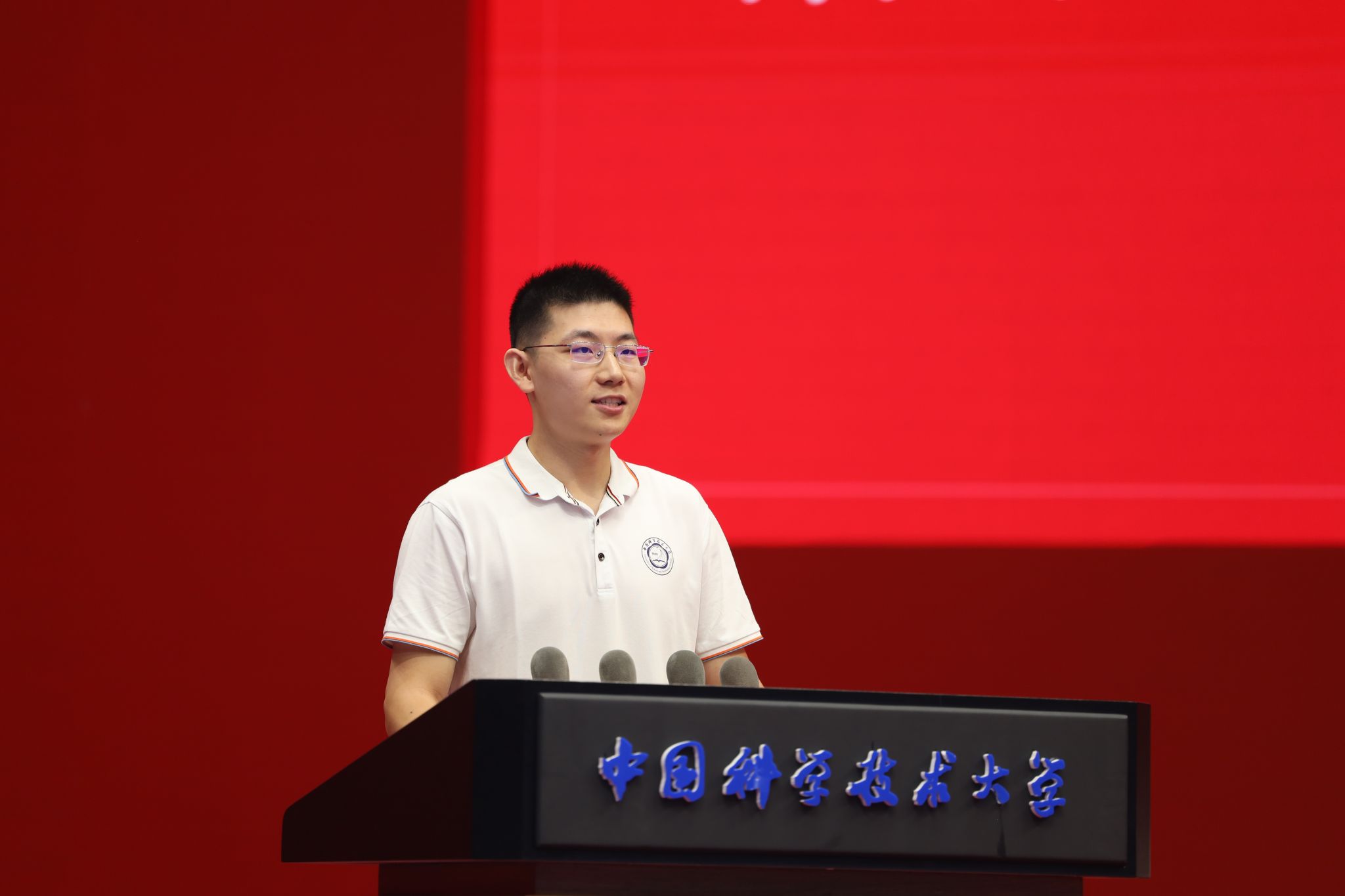 计算机科学与技术学院2025级本科生曲培鑫作为本科生新生代表发言。通过参加新生演讲比赛,他认真了解了老一辈科学家的光辉事迹。他说,这些中国科大的老一辈科学家用毕生心血诠释了“红专并进、理实交融”的校训真谛,展望在科大的学习生活,他将深入学习校史,感悟老一辈科学家的精神世界,将科教报国、追求真理的信念内化于心、外化于行。