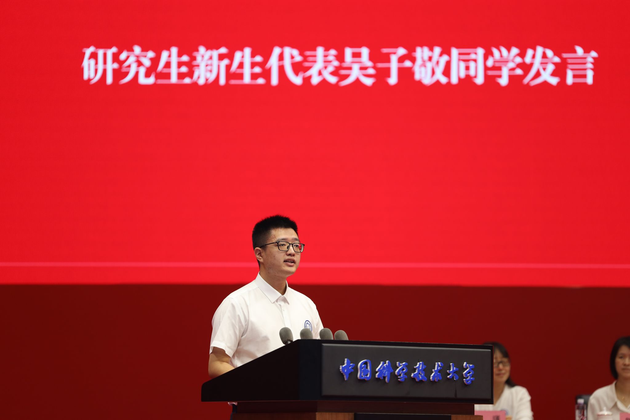 人工智能与数据科学学院2025级硕士研究生吴子敬作为研究生新生代表发言。他说,从本科生到研究生,变的是身份,不变的是初心,增长的是知识,更是责任。他表示,科研从来不是象牙塔中的孤芳自赏,而是与国家命运同频共振的伟大事业,生逢其时,重任在肩,科技报国,时不我待,希望能以老一辈科学家为榜样,把个人理想融入国家发展伟业,把学术追求扎根于祖国大地。