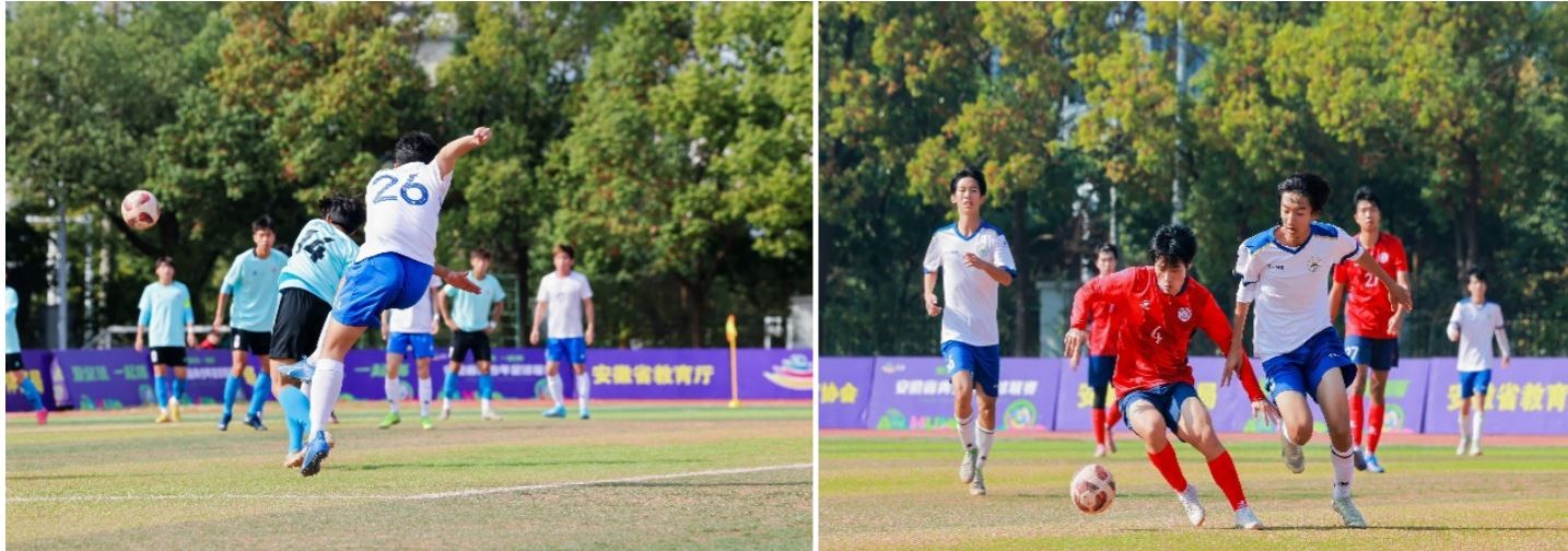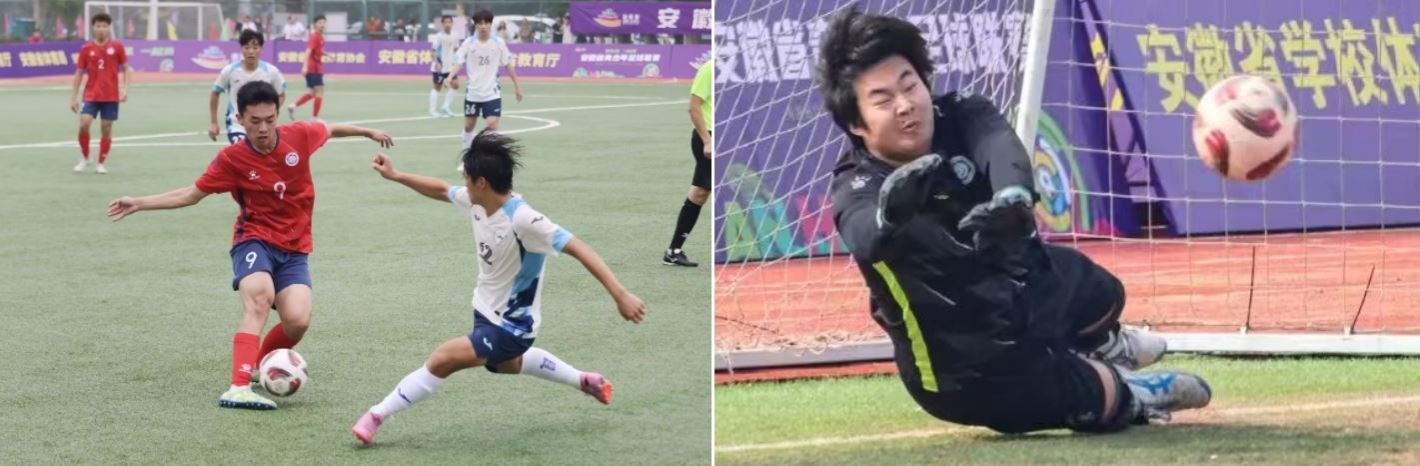 在11月2日至5日的密集赛程中,校队先后迎战多路强敌。其中,对阵安徽职业技术大学一役尤为激烈,球队在落后局面下,由方智昀在比赛末段打入绝平进球。点球大战中,门将李世轩发挥神勇,连续扑出两记点球,助球队以3:1获胜。随后赛事中,球队愈战愈勇:3:0完胜黄山学院,巫奕楠、纪文杰、叶尔那尔分别建功;在与安徽财经大学的防守大战中,再次凭借点球决胜3:2取胜;小组赛收官战对阵安徽农业大学,轮换阵容出战的校队仍展现出强大实力,冷耀铭中场远射破门,为小组赛征程画上圆满句号。