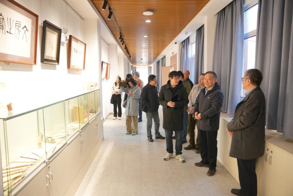 11月11日上午,安徽省非遗研究会会长宋国权一行来我校,调研非遗工坊师徒制教育模式创新与传承工作。人文与社会科学学院党委书记李雅清、文房四宝工艺传承基地首席专家汤书昆陪同考察交流。安徽省非遗研究会常务副会长吴行,副会长徐东平、程春雷、肖金和等参加调研。《中国笔墨纸砚》全校本科生核心通识课特聘中国文房四宝行业著名专家毛笔工坊导师佘征军、制砚工坊导师朱岱、制墨工坊导师程国胜、造纸工坊导师朱建新、纸笺工坊导师方春希和有关师生参与调研交流。