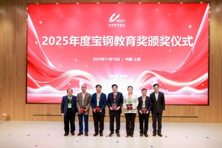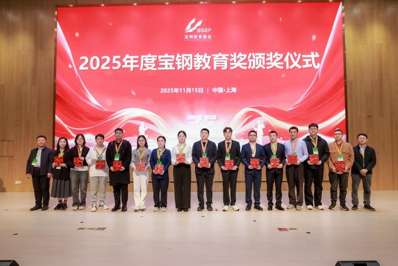2025年11月15日,2025年度宝钢教育奖颁奖仪式在上海顺利举行,来自全国115所高等院校的282名教师、509名学生荣获宝钢教育奖。我校党委常务副书记蒋一、获奖师生代表出席,党委教师工作部、人力资源部、党委学生工作部(处)代表业务部门参加。